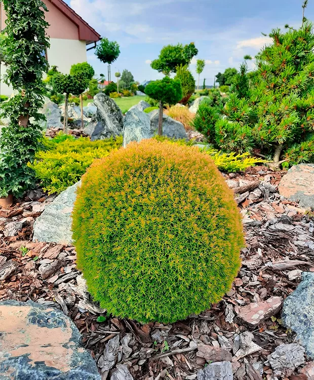 Tuia Occidentalis 'Anniek' este un conifer ornamental de talie mică, apreciat pentru frunzișul său dens și coloritul spectaculos, care variază de la verde deschis primăvara la nuanțe aurii intense pe parcursul verii. Datorită creșterii compacte și formei sale naturale globulare, acest tuia este ideal pentru borduri, grădini de rocă și plantări în ghivece decorative.